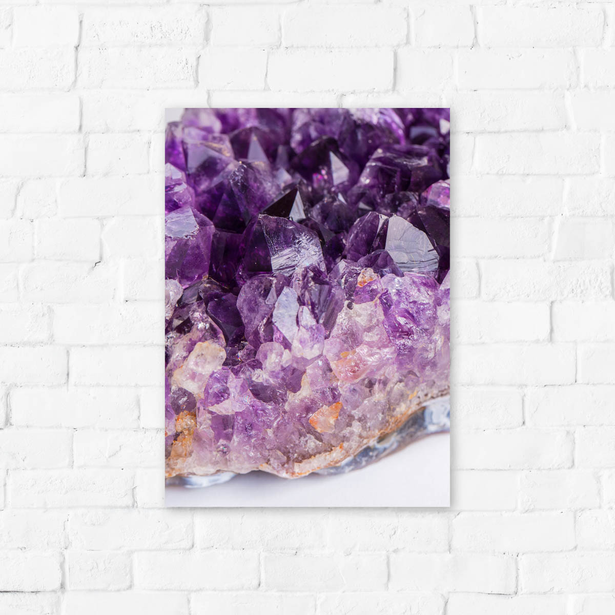 Kies de perfecte afdrukoptie voor jouw huiskamer of kantoor. Of je nu gaat voor de moderne uitstraling van dibond, de lichtheid van forex, of de warmte van canvas, onze amethyst art print komt tot leven op elk materiaal.